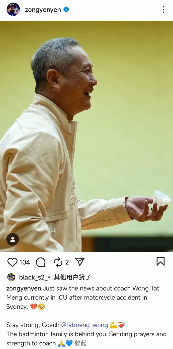 李梓嘉前教練黃達(dá)明遭遇車禍 正在ICU治療