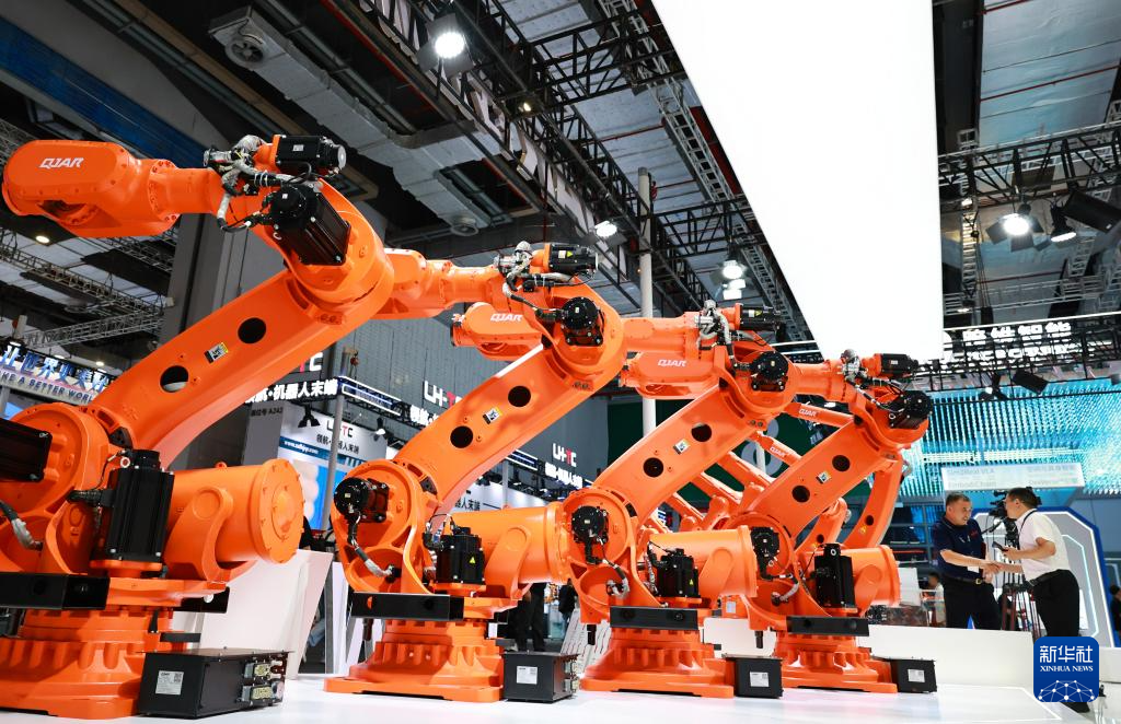 這是展覽現場展示的一組大型工業機器人產品(9月23日攝)。