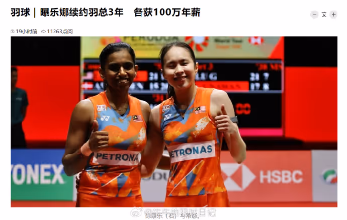 此前,由于她們在舊合約于2024年12月屆滿后一直未續約,引發外界對她們是否將轉為自由人的猜測。馬來西亞羽總在兩次延長談判日期后,雙方最終在近日敲定協議。不過,這還有待馬來西亞羽總官宣,才能確定陳康樂與蒂娜繼續留在馬來西亞羽總。
