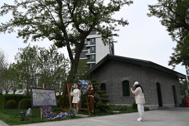游客在石家莊車輛廠法式別墅拍照打卡。張震 攝