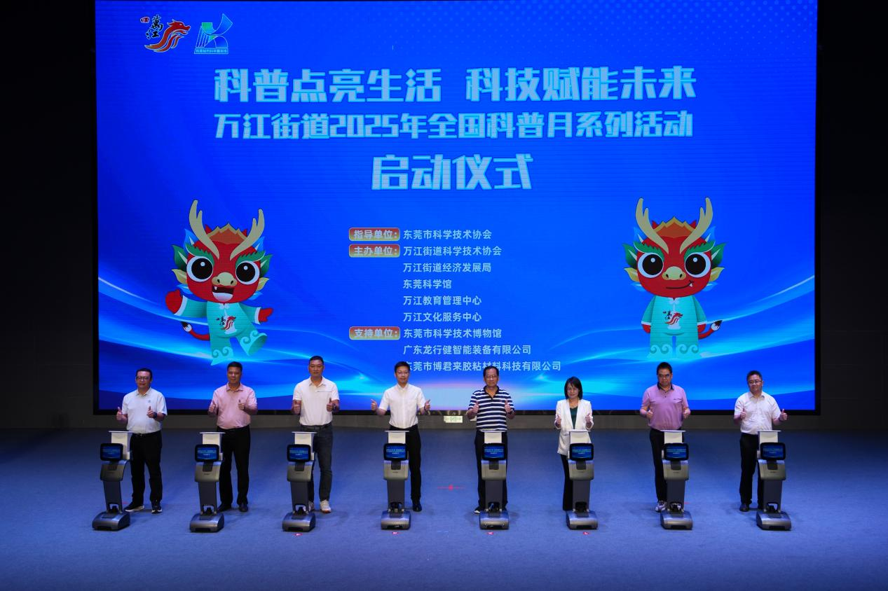 本次活動得到東莞市科學技術協會、萬江區委等多個部門共同支持。莞萬啟動儀式上,江街機器人“嘉賓”亮相共同按下啟動鍵,頭玩科技感拉滿。鎮館章東轉科